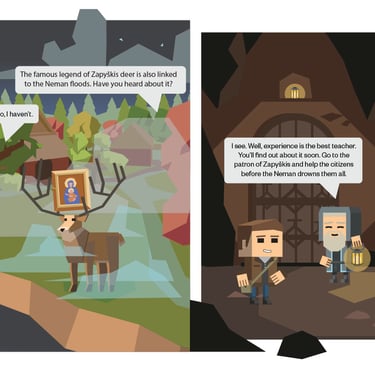 Work as a 2d art lead on "Kaunas Capital of Culture" official mobile game "New Hanseatic Route". A few hundred dialogue cards with characters and backgrounds, 10 maps, 10 comic book chapters, dozens of inventory items. https://kaunas2022.eu/naujasis-hanzos-kelias/